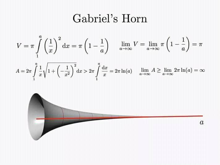 شكل هندسي له حجم منتهي ومساحة سطح غير منتهية!????