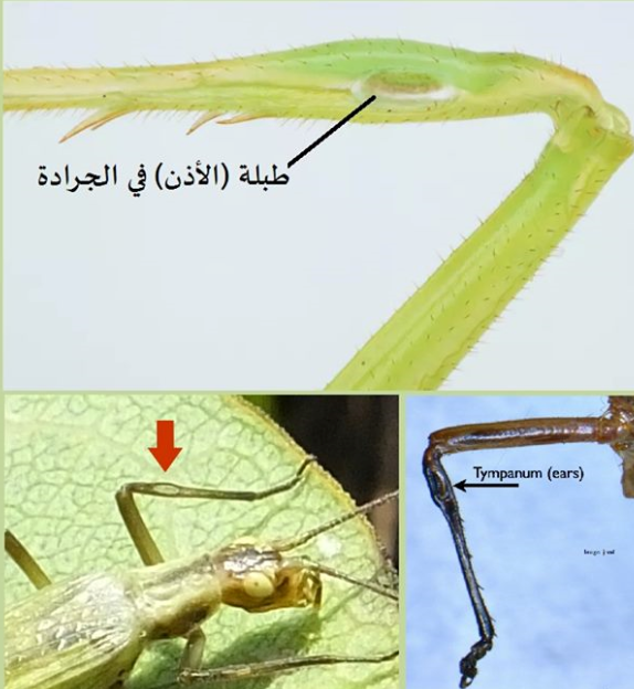 طبلة الاذن التي نعرفا والتي تتحسس الذبذبات الصوتية المحمولة في الهواء، والموجودة في اذن الانسان والحيوانات الاخرى، توجد في الكثير من الحشرات في ارجلها والحشرات كغيرها من المخلوقات تحتاج لسماع الاصوات اما لاتقاء الخطر او لسماع نداء التزاوج الذي تطلقه الذكور في العادة لجذب الاناث. اما توليد الاصوات فيكون باحتكاك جزء من الجسم كالجناح مثلا بالارجل الخلفية او بالجسم نفسة.