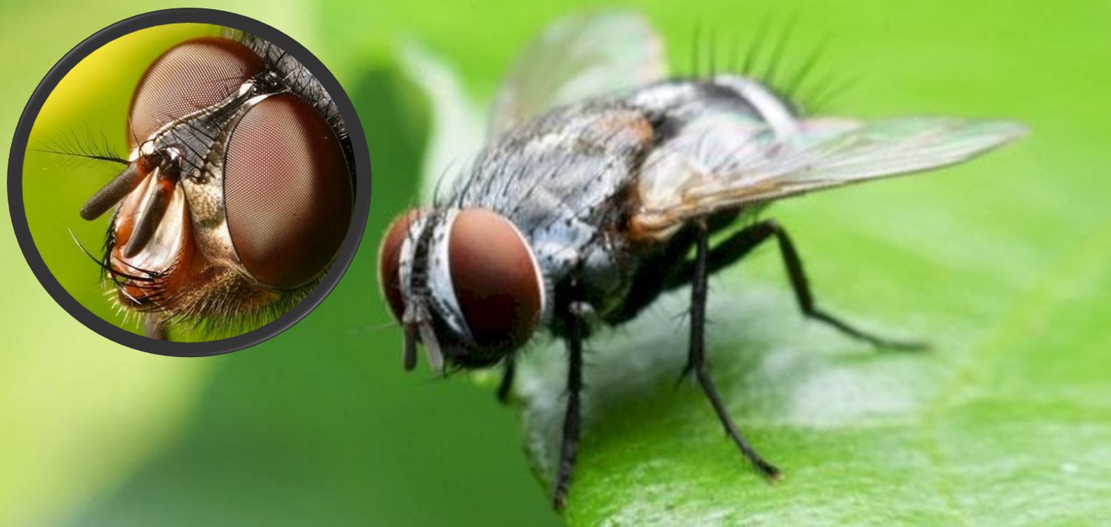 يمتلك الذباب المنزلي عيون مركبة (مجموعة من مئات العيون الصغيرة) بحيث إن الذبابة تستطيع أن ترى أي حركة تحدث من حولها وفى أي اتجاه، وهذا ما يجعل الذبابة كثيرة الحذر شديدة اليقظة.