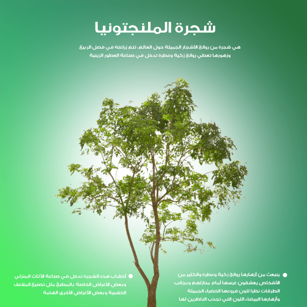 شجرة زينة وظل تتحمل الجفاف منتشرة في السعودية ودول الخليج ارتفاعها يصل الى 10 امتار وعرضها 5 امتار اوارقها خضراء كامله الحافه وزهورها بيضاء بحجم 12سم ذات رائحة جميلة.