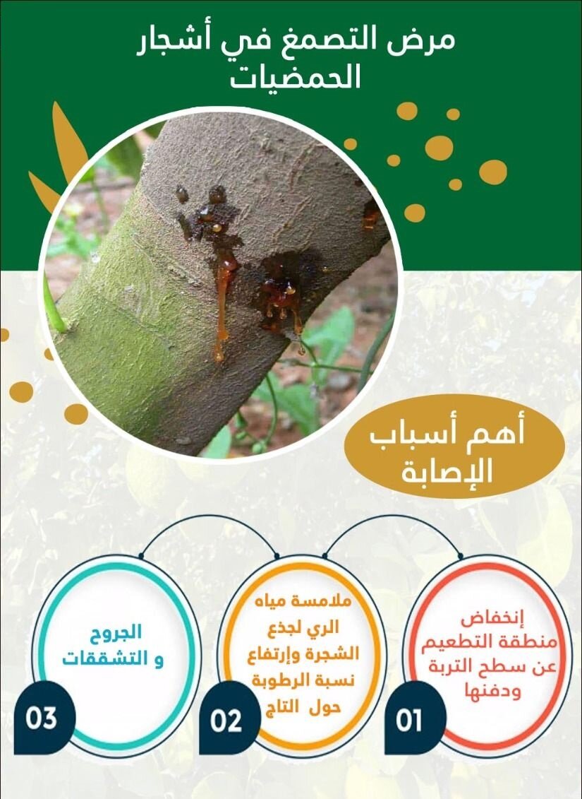 اسباب الاصابة بمرض التصمغ على اشجار الحمضيات