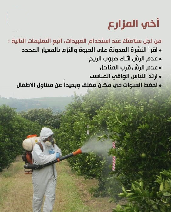 التعليمات المتبعة عند استخدام المبيدات لسلامت المزارع..