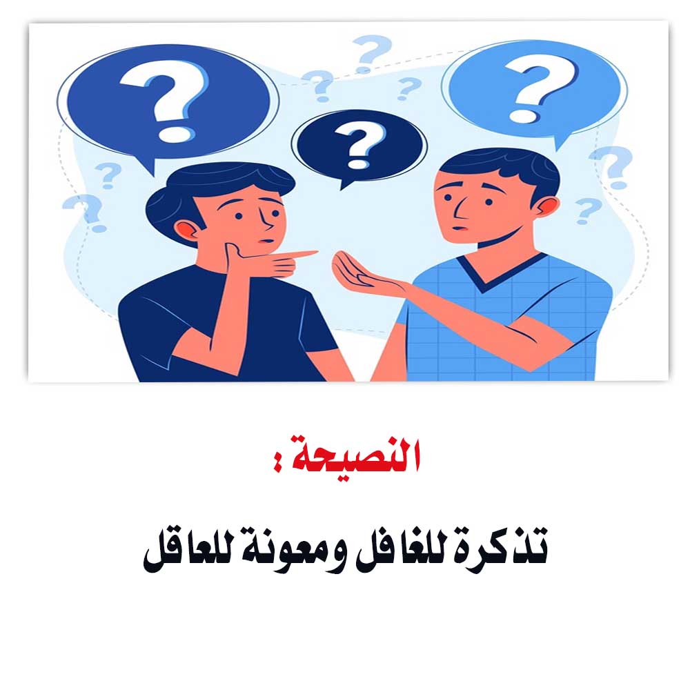 النصيحة : تذكرة للغافل ومعونة للعاقل .