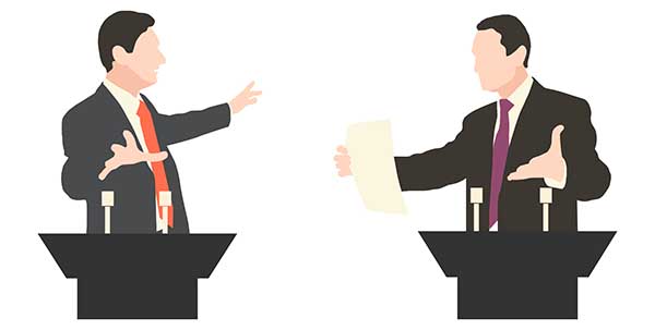 مناظرة: حوار في موضوع ما بين شخصين او فريقين احدهما مؤيد والاخر معارض