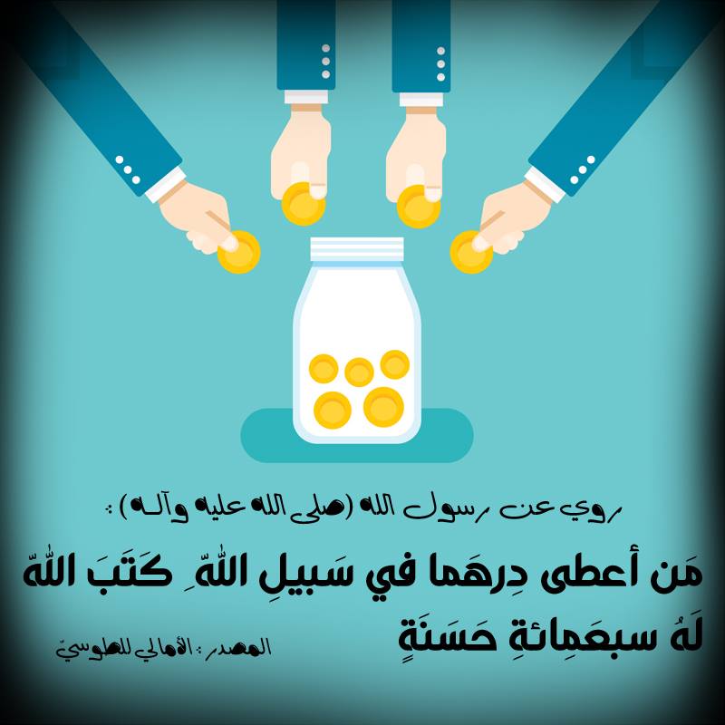رسول الله ( صلى الله عليه و آله ) أنهُ قَالَ : مَن أعطى دِرهَما في سَبيلِ اللّه ِ كَتَبَ اللّه ُ لَهُ سبعَمِائةِ حَسَنَةٍ .