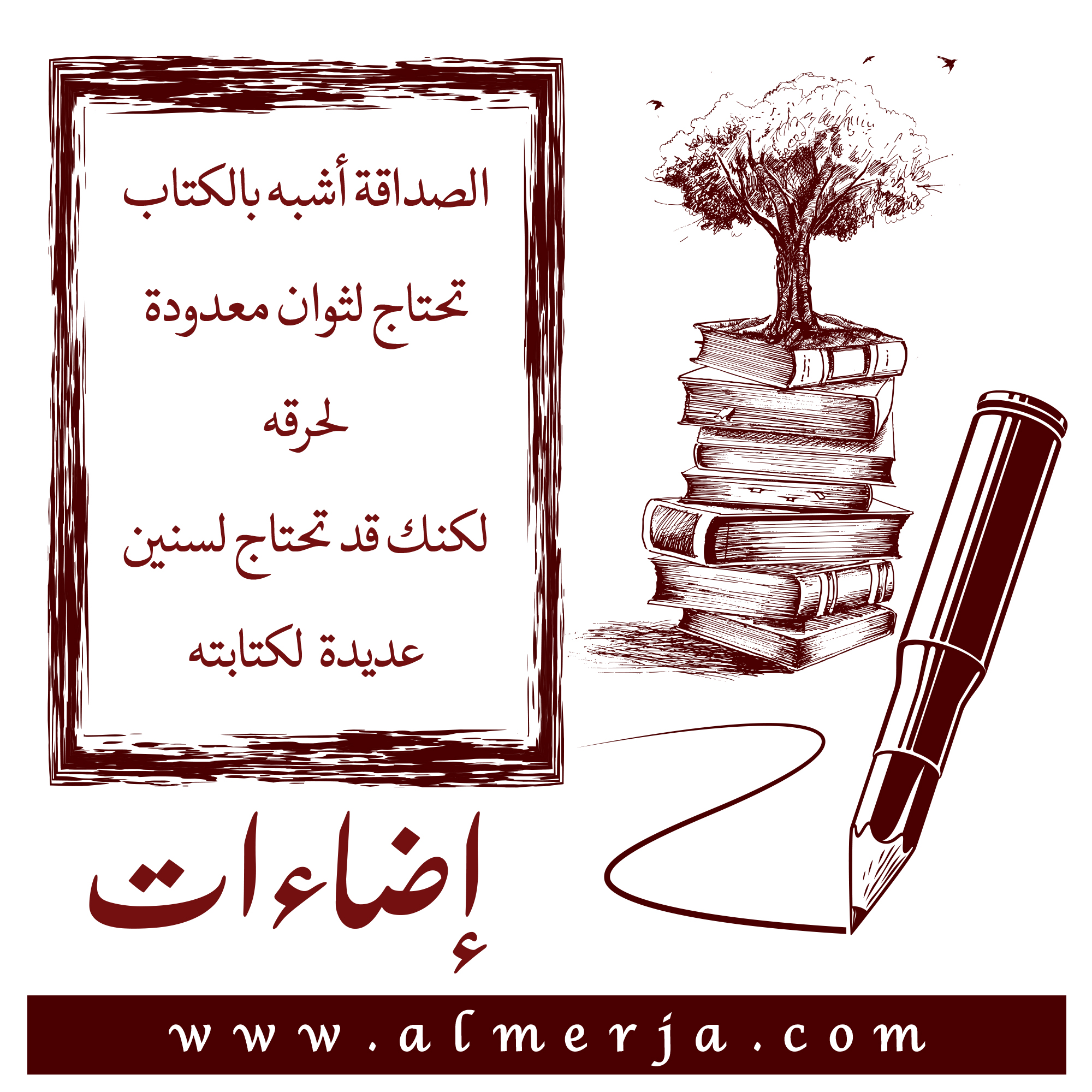 الصداقة أشبه بالكتاب تحتاج لثوان معدودة لحرقه، لكنك قد تحتاج لسنين عديدة لكتابته
