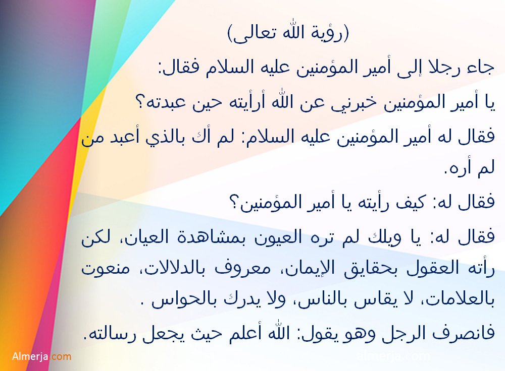 يا أمير المؤمنين خبرني عن الله أرأيته حين عبدته؟