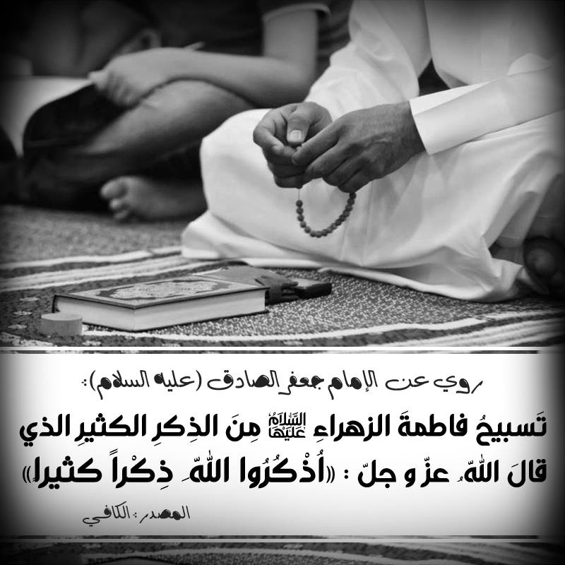 الإمام جعفر بن محمد الصادق ( عليه السلام ) أنهُ قَالَ : تَسبيحُ فاطمةَ الزهراءِ عليها السلام مِنَ الذِكرِ الكثيرِ الذي قالَ اللّه ُ عزّ و جلّ : «اُذْكُرُوا اللّه َ ذِكْراً كثيراً» .
