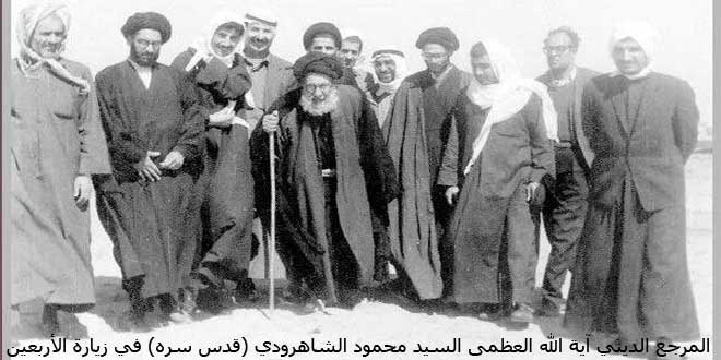 كان المرجع الديني آية الله العظمى السيد محمود الحسيني الشاهرودي يخرج من النجف إلى مدينة كربلاء المقدسة مشياً ثم يمشي خلفه الأساتذة والطلاب وسائر الناس. وبعد الزيارة، يتخذ أكثرهم السيارات للوصول إلى النجف الأشرف ولكن السيد الشاهرودي كان يرجع مشياً ، وقد اشتهر عنه أنه زار الإمام الحسين (ع) 40 مرة سيراً على قدميه.
