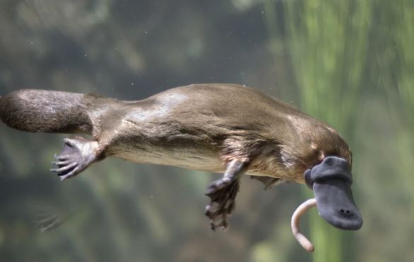 The platypus eats small freshwater animals, which it hunts at night, underwater, with its eyes and ears closed. It finds and catches underwater creatures that are swimming or sunken in the bottom mud by tracking them down with its sensitive bill, which can detect electricity and motion.