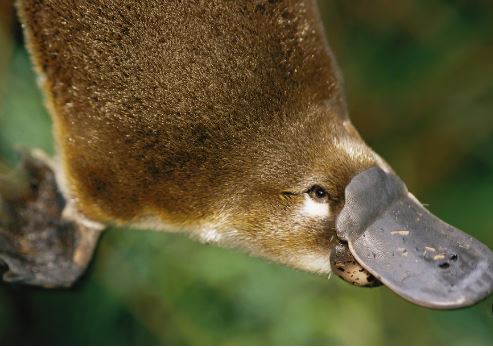 The snout, despite its duckbill shape, is soft, moist, and rubbery in texture, not hard like a birds beak. The bill has an upper and lower section, like that of a mammal or bird, and the jaw hinging and motions are like those of mammals. The nostrils are set close together on the top of the upper bill.