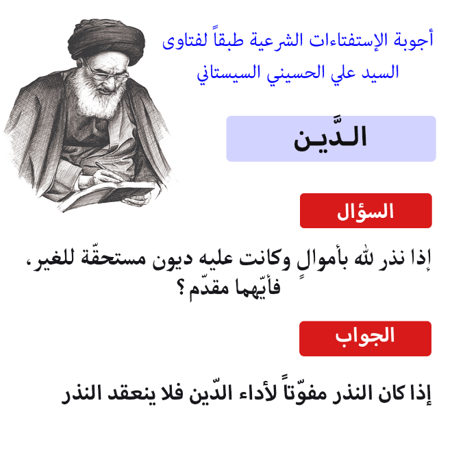 السؤال: إذا نذر لله بأموالٍ وكانت عليه ديون مستحقّة للغير، فأيّهما مقدّم؟