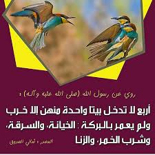 عن رسول الله صلى الله عليه وآله: أربعةٌ لا تدخُلُ بيتاً واحدةٌ منهُنَّ إلّا خَرِبَ ولم يَعمُر بالبركةِ ، الخيانة ، والسرقة ، وشرب الخمر ، والزنا. ثواب الأعمال 289