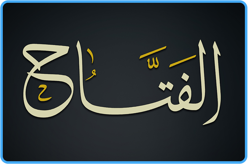 الفَتَّاحُ: الحَاكِمُ بَينَ عِبَادِهِ، فَيَقضِي بَينَهُم، وَهُوَ الذِي يَفتَحُ أَبوَابَ الرِّزقِ وَالرَّحمَةِ لِعِبَادِهِ.