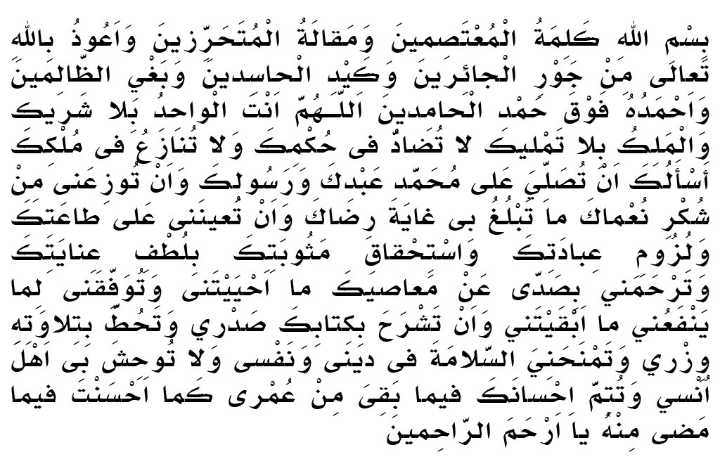 " اللهم أنت ثقتي في كل كرب وأنت رجائي في كل شدة، وأنت لي في كل أمر نزل بي ثقة وعدة، كم من كرب يضعف عنه الفؤاد، وتقل فيه الحيلة ويخذل فيه القريب، ويشمت به العدو وتعييني فيه الأمور، أنزلته بك وشكوته إليك راغبا فيه إليك عمن سواك، ففرجته وكشفته عني وكفيتنيه، فأنت ولي كل نعمة، وصاحب كل حاجة، ومنتهى كل رغبة، فلك الحمد كثيرا ولك المن فاضلا ".