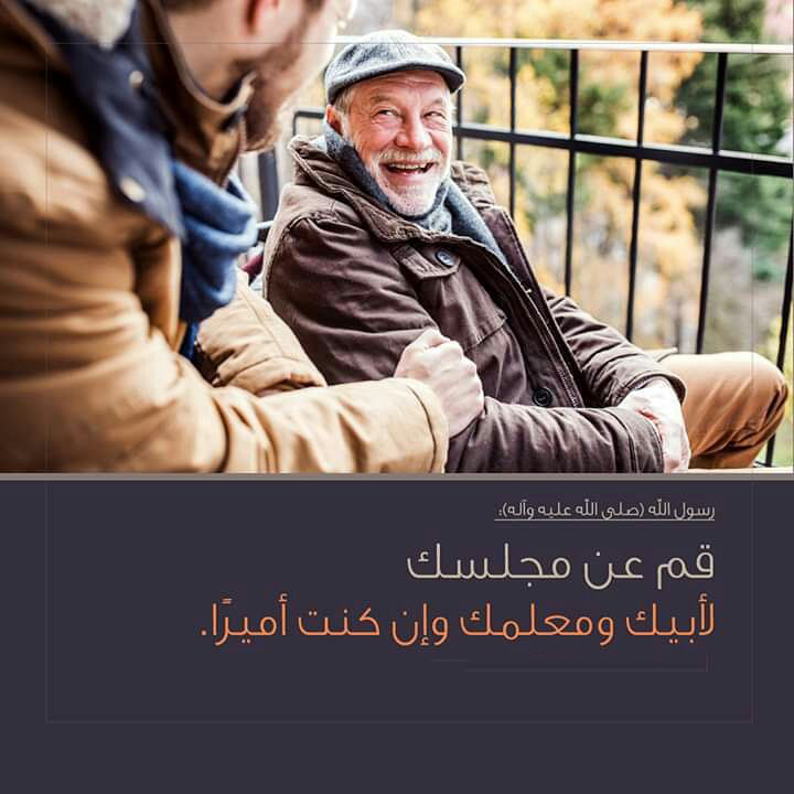 عن أمير المؤمنين علي (عليه السلام): قم عن مجلسك لأبيك ومعلمك وإن كنت أميراً.