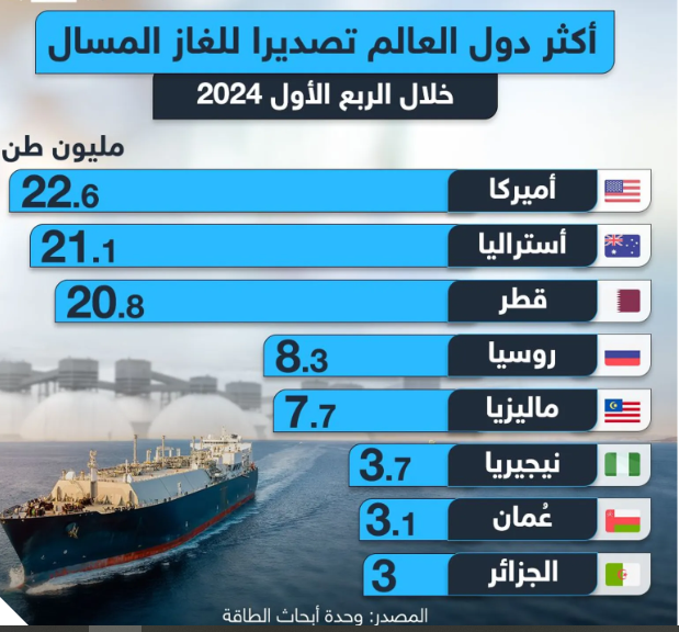 بينهم 3 دول عربية.. أكثر البلدان تصديرا للغاز المسال في