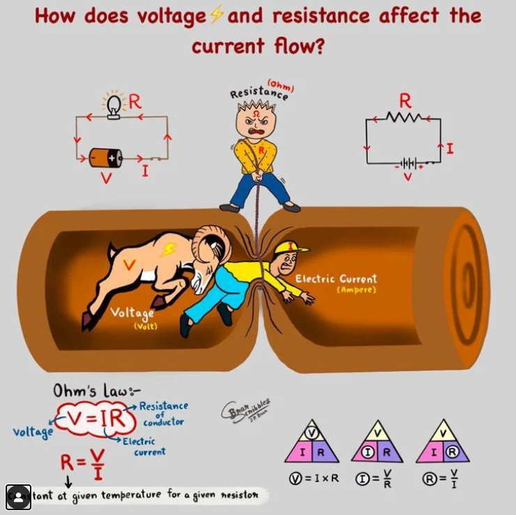 كيف تؤثر الفولتية والمقاومة على التيار الكهربائي.