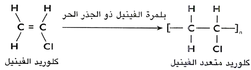 يتم إنتاج ال PVC ببلمرة كلوريد الفينيل CH2=CHCl