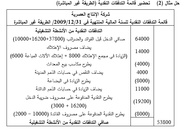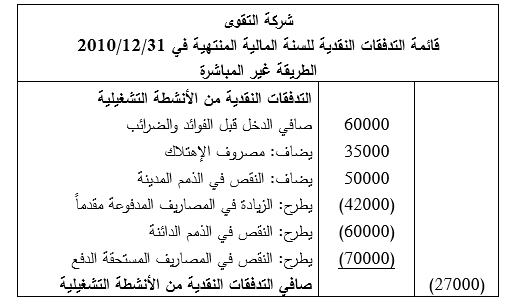 المطلوب : اعداد الجزء التشغيلي من قائمة التدفقات النقدية للسنة المنتهية 31/12/2010 لشركة التقوى بالطريقة الغير مباشرة