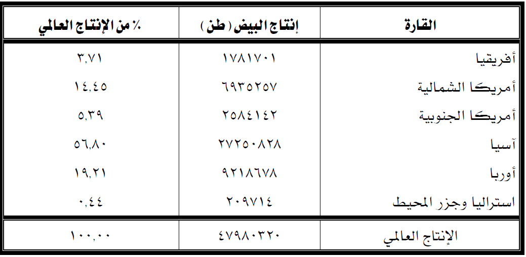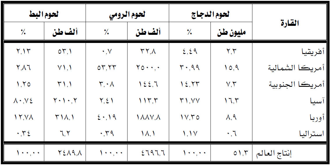 جدول الإنتاج العالمي من لحوم الدواجن عام ۱۹۹۸م