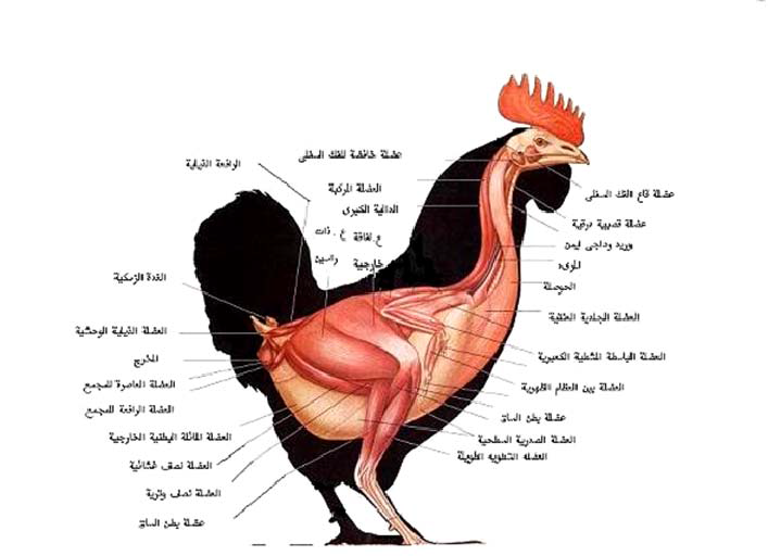 شكل يبين العضلات السطحية للدجاجة منظر وحشي ايمن
