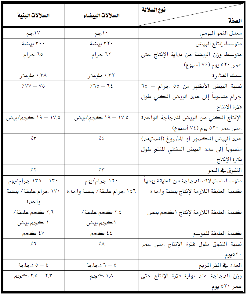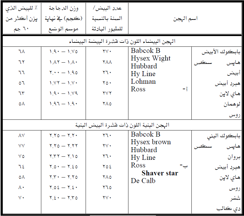 اهم الهجن المنتجة لبيض المائدة وبعض مواصفاتها الانتاجية