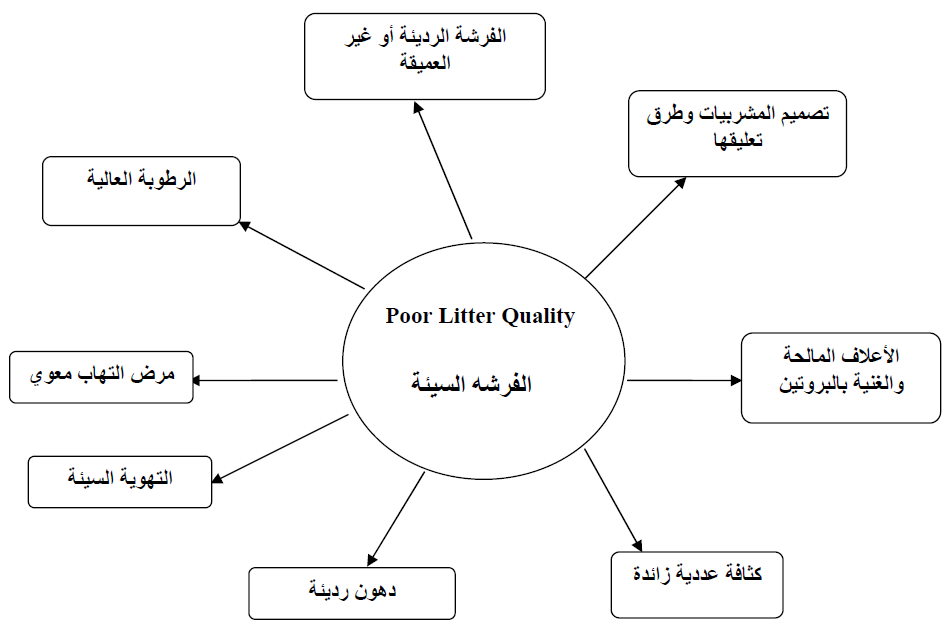 إن الطيور التي تتمتع بصحة جيده تتمكن من الدفاع عن نفسها ضد الأمراض المعدية السائدة عن طريق الحواجب الطبيعية مثل الجلد والغشاء المخاطي وجدران الأمعاء وغيرها . وهناك عوامل عدة مثل الفرشة المبتلة والجفاف يعيق العوامل البيئية ، لذا يجب الحفاظ على البيئة الصحية لأنها حاسمة وحاسمة جدا بالنسبة للطيور.