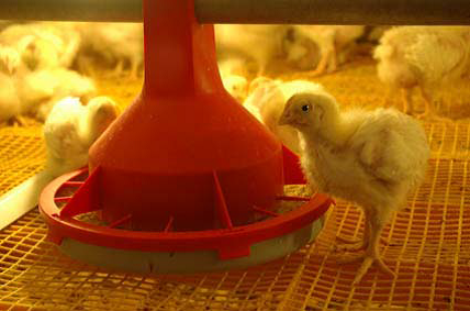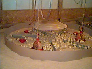 ۸) كما يجب عدم وضع أجهزة العلف ( المعالف وتوابعها ) تحت الحضانات مباشرة أو في مكان قريب جدا منها، كما يجب توزيع العليقة على المعالف قبل وصول الصيصان مباشرة.