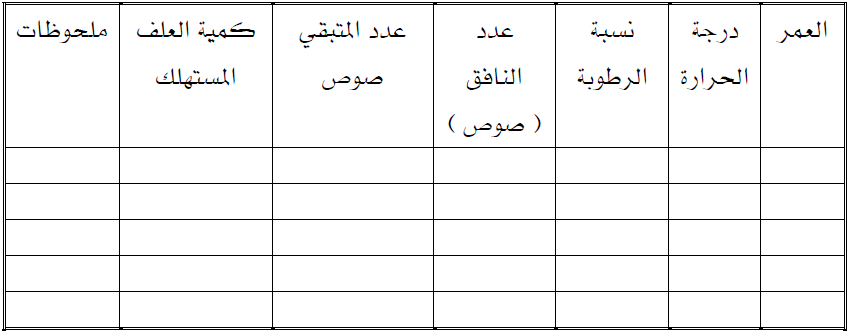 جدول (5) نموذج لسجل يومي لمتابعة الصيصان