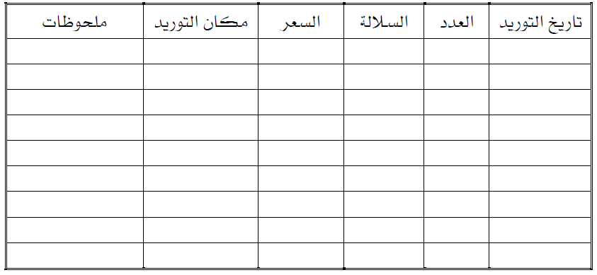جدول ( 4 ) نموذج لسجل توريد صوص ( بياض )