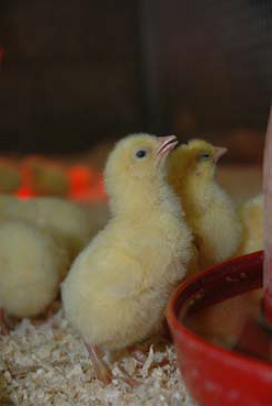 إن الظروف البيئية تؤثر على أداء سلامة الصيصان. والعوامل البيئية المهمة هي درجة الحرارة ، والرطوبة ، والتهوية ومستوى الغازات السامة في الهواء . وتعتمد درجة الحرارة المثلى للصيصان على أعمارها وقد تبين نتيجة الدراسات والتجارب أن متطلبات الصيصان من درجات الحرارة في مختلف الأعمار هي كما يلي