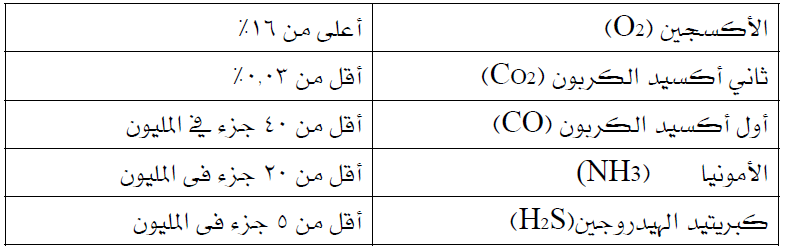 جدول (۳) يوضح الاحتياجات الهوائية للصيصان داخل العنابر