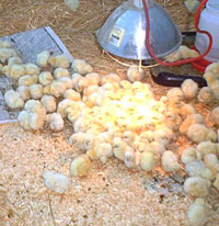 ۱۰) كما يجب أن لا تكون أعمدة الحماية حول الحضانات ، والتي من الأفضل أن تكون معمولة من شاش سلكي ، أطول من 466 سم ( 18 بوصة ) . كما يجب أن تكون الكثافة العددية حول الحضانة (۳٫6 بوصة / ۲طائر أو ۳۰ طائر/م2 ) وإن أمكن تعمل حظائر صغيرة وفردية لتربية مجموعات الصيصان الواصلة حسب أعمارها، لأن هذا يحسن من أداء الفوج وتساوي الصيصان أو الطيور في الأحجام.