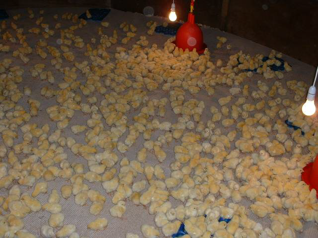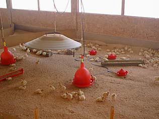 ۳) غط أرضية العنبر كله بالفرشة لمنع الفقد الحراري وتأكد من أن النشارة المفروشة على الأرض مستوية ومضغوطة تماما ، لأن عدم مساواة الأرضية أو الفرشة تؤدي إلى اختلافات في درجات الحرارة في الأماكن المختلفة من العنبر ، مما يؤدي إلى تكتل الصيصان في أماكن معينة أو تحت الأجهزة أو المعدات . وهذا بالطبع يؤدي إلى الحد من وصول الصيصان إلى المعالف والمشارب في هذه المرحلة الحرجة أو الحاسمة من مراحل النمو.