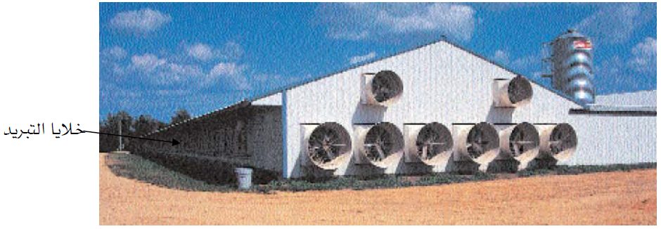 من المهم الاختيار الصحيح لنظام التبريد والتهوية الذي يناسب المنطقة التي تقام بها المزرعة ، وأن يراعى في اختياره درجة حرارة المنطقة التي تقام بها المزرعة ونسبة الرطوبة بها ومدى وفرة المياه حيث هناك بعض نظم التبريد تحتاج إلى كميات كبيرة من المياه العذبة والتي توجد بها الأملاح بمقدار قليل وهذا غير متوفر وخاصة في المناطق الصحراوية شكل (20).