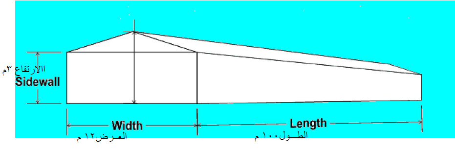 شكل (۲) يوضح الأبعاد المختلفة لعنبر الدواجن