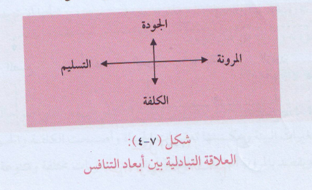 يتضح من التتابع في اعتماد أبعاد التنافس في منظمات الأعمال وبحسب فتراتها الزمنية، بأن المنظمات لا يمكنها أن تعتمد أكثر من بعد تنافسي في ذات الوقت، على أساس أن هذه الأبعاد في علاقة تبادلية وكما موضحة في الشكل (٧-٤).