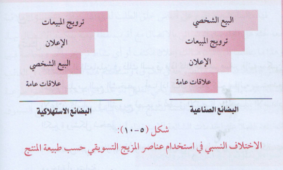 تختلف البضائع الانتاجية كثيراً سواء كان ذلك من حيث الخصائص التي تميزها او الهدف من استخدامها . إلا ان ما يهم في هذا الموضوع هو الاختلاف في الأسلوب الترويجي المعتمد لكل منهما ، والاهمية النسبية الكلفوية لكل نشاط يمكن اعتماده فيما يتعلق بذلك المنتج وبطبيعته. وكما يتضح ذلك في الشكل (10- 5) :
