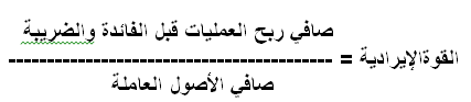 3. أرباح الاستثمار قبل طرح الفوائد وذلك لقياس ريعية الأموال الكاملة المستخدمة , ومن ضمنها الديون التي ساعدت على زيادة العائد على الاستثمار .