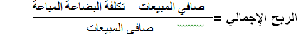1- نسب الربحية على أساس المبيعات : النسبة الأولى وتتعلق بالربح الإجمالي وتحسب وفق مايلي :
