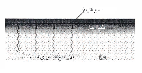 الشكل 4 طبقة الغبار التي تقطع ارتفاع الشعيري للماء وتبخر الماء من سطح التربة.