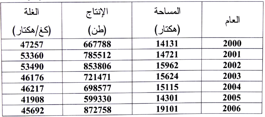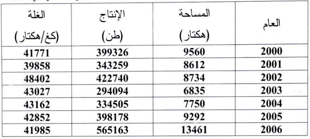 المجموعة الإحصائية الزراعية السنوية 2006- وزارة الزراعة والإصلاح الزراعي.