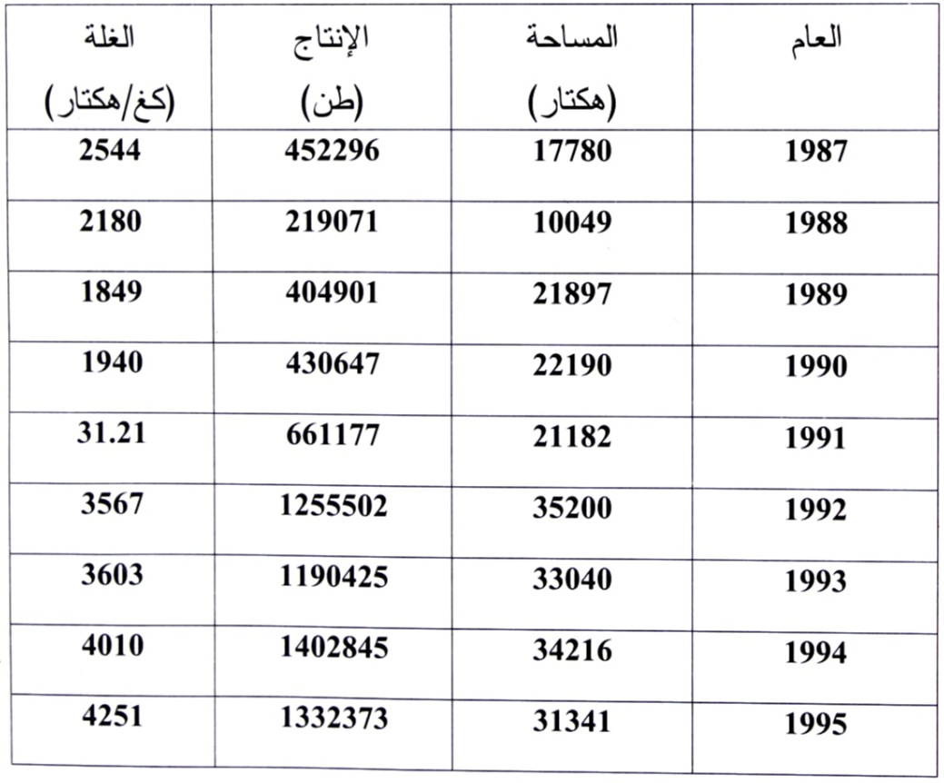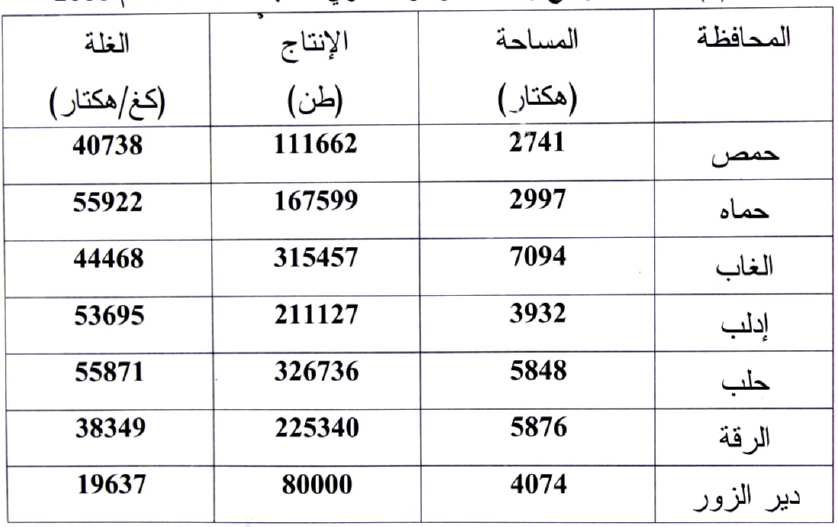 المجموعة الإحصائية الزراعية السنوية 2004- وزارة الزراعة والإصلاح الزراعي.