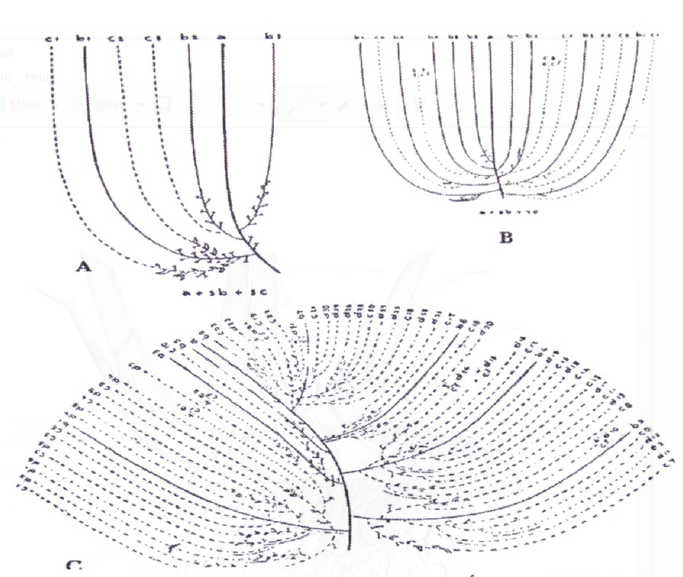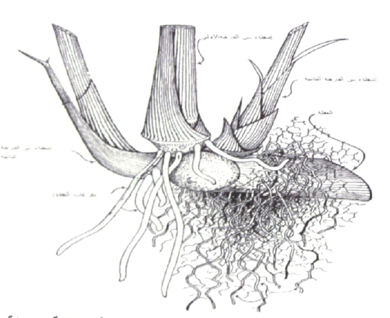 الشكل (2): يبين الأجزاء النباتية المختلفة لقصب السكر في بداية مرحلة الإشطاء.