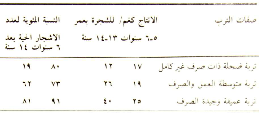 جدول يبين تأثير الترب على انتاج وعمر اشجار الخوخ