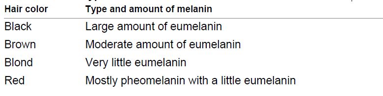 The type and amount of melanin determines hair color