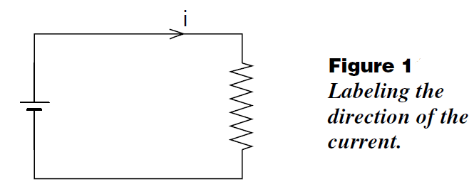 (2) Label all the voltage rises in the circuit. Use arrows to indicate the direction of the voltage rise as we did in Figure (2). Note that if we go through the resistor in the direction of the current, we get a voltage drop. Therefore the arrow showing the voltage rise in a resistor must point back, opposite to the direction of the