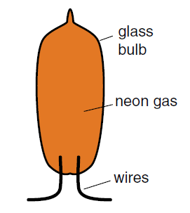 Figure 1: A neon bulb. When the voltage across the wires reaches a threshold value, typically around 100 volts, the neon gas starts to glow, and the gas suddenly changes from an insulator to a conductor.