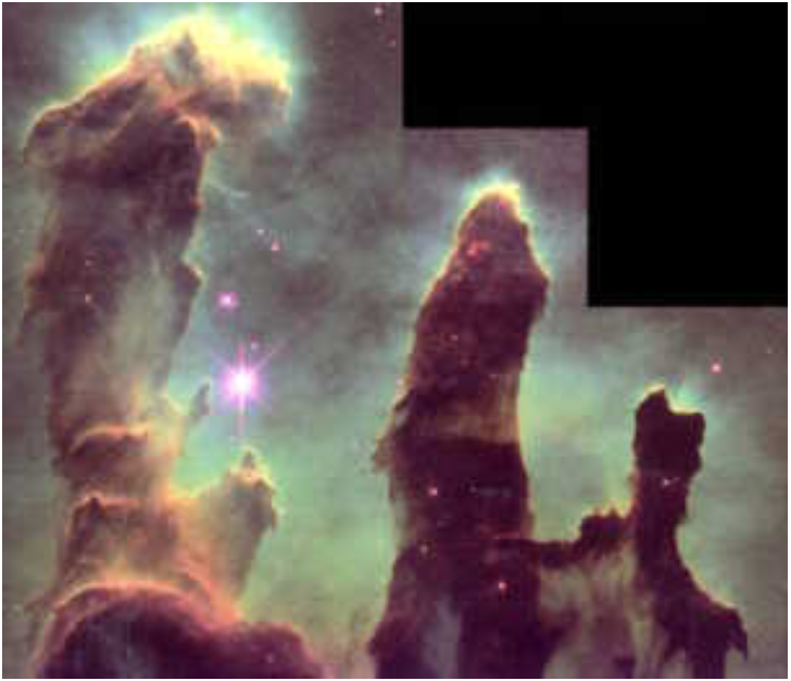 Figure 1: The eagle nebula, birthplace of stars. This Hubble photograph, which apeared on the cover of Time magazine, is perhaps the most famous.
